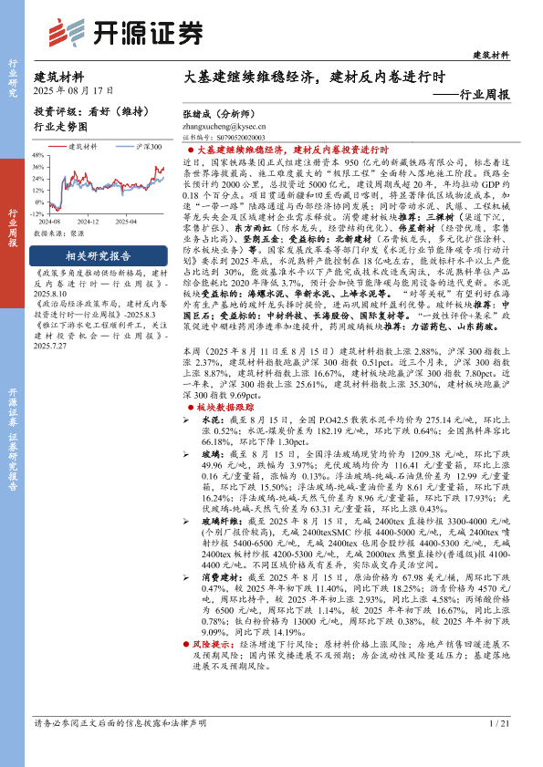 【开源证券】【20250817】大基建继续维稳经济,建材反内卷进行时-21页