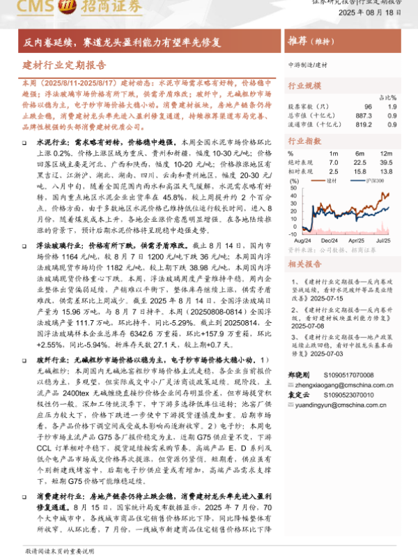 【海通证券】【20250818】建材行业定期报告-反内卷延续,赛道龙头盈利能力有望率先修复-25页