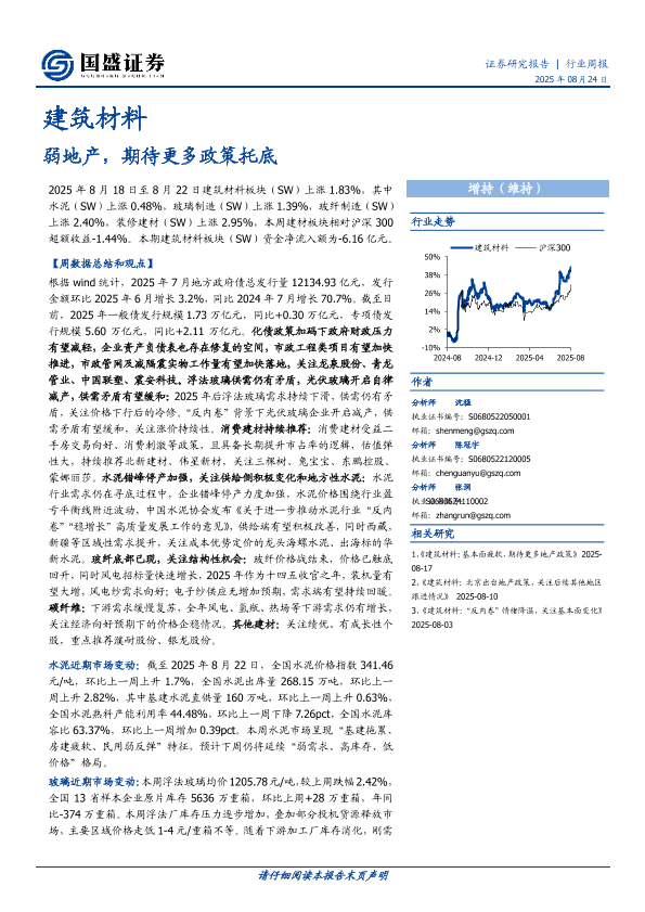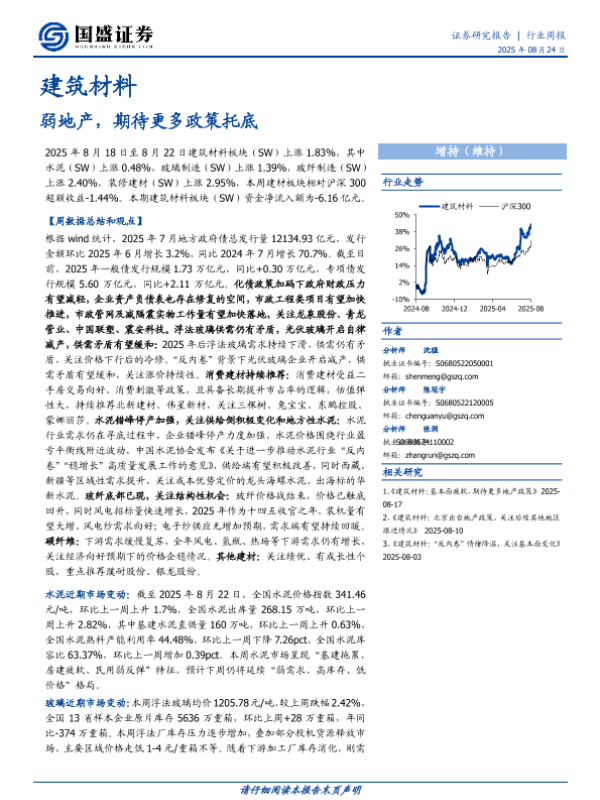 【国盛证券】【20250824】建筑材料行业周报:弱地产,期待更多政策托底-19页