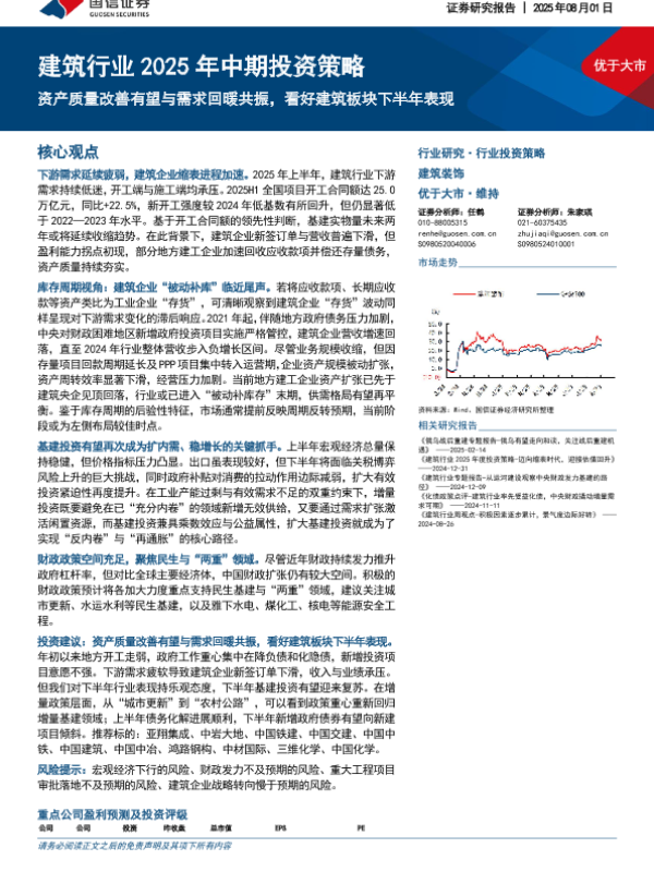 【国信证券GUOXIN SECURITIES】【20250801】建筑行业2025年中期投资策略-资产质量改善有望与需求回暖共振,看好建筑板块下半年表现-36页