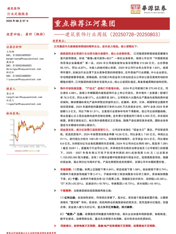 【华源证券】【20250807】江河集团-建筑装饰行业周报:重点推荐江河集团-10页