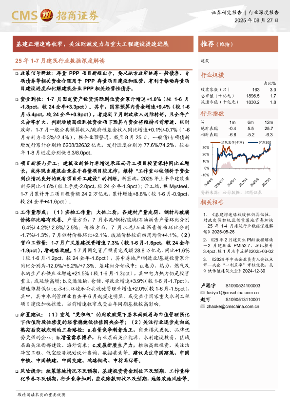 【海通证券】【20250827】25年1-7月建筑行业数据深度解读-基建正增速略收窄,关注财政发力与重大工程建设提速进展-21页