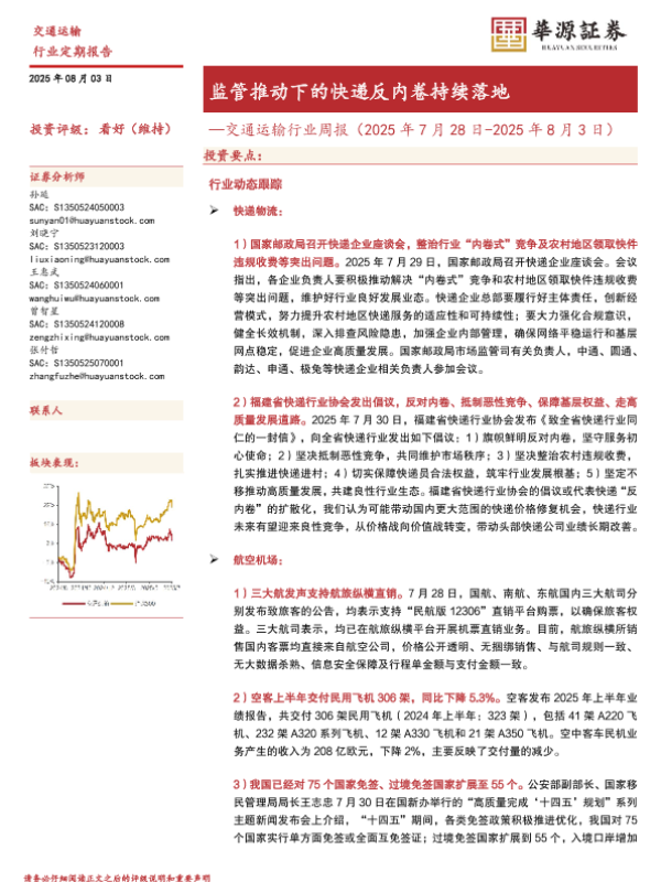 【华源证券】【20250803】监管推动下的快递反内卷持续落地-交通运输行业周报-17页