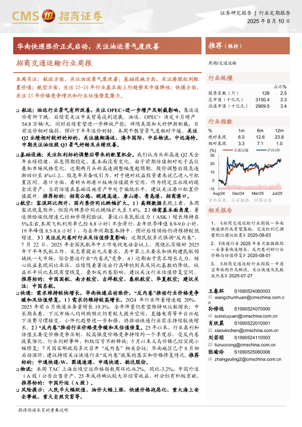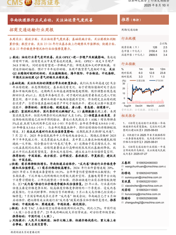 【海通证券】【20250810】华南快递涨价正式启动,关注油运景气度改善-16页