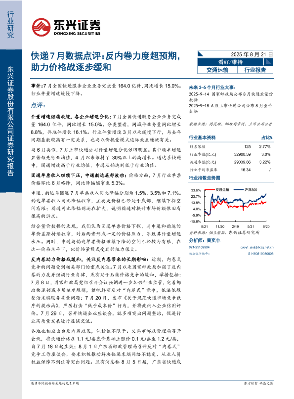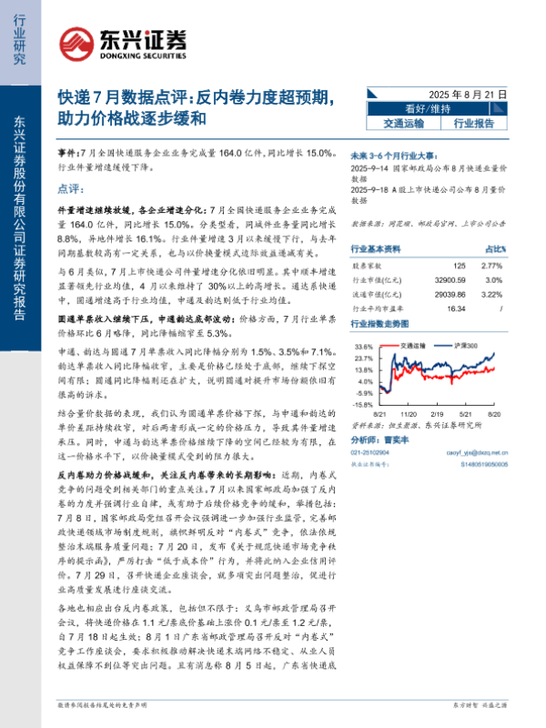 【东兴证券股份有限公司证券研究报告】【20250821】快递7月数据点评:反内卷力度超预期,助力价格战逐步缓和-11页