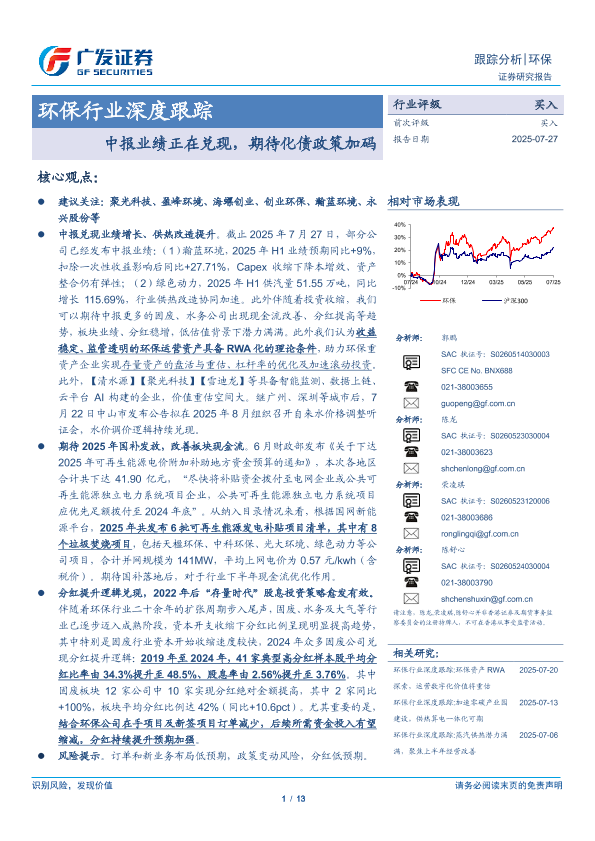 【广发证券】【20250727】环保行业深度跟踪-中报业绩正在兑现,期待化债政策加码-13页