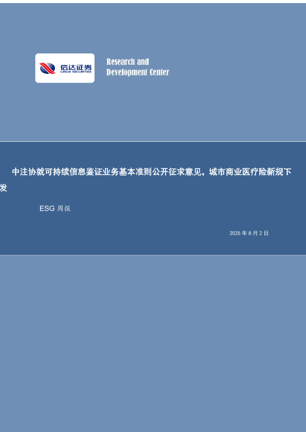 【信达证券 Research and Development Center】【20250802】中注协就可持续信息鉴证业务基本准则公开征求意见-城市商业医疗险新规下发-13页