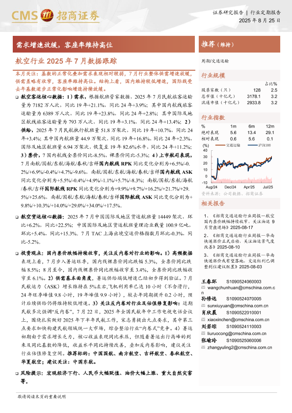 【海通证券】【20250825】航空行业2025年7月数据跟踪-需求增速放缓,客座率维持高位-13页