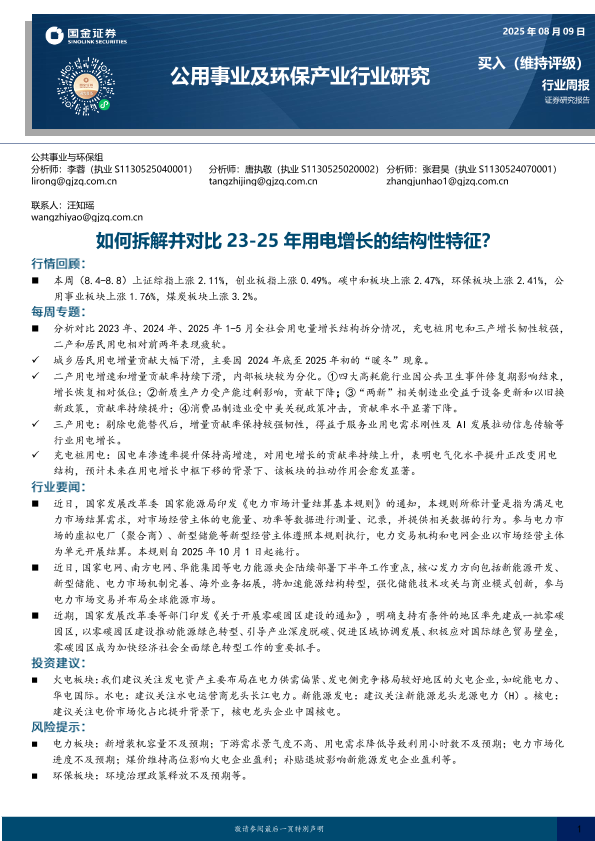 【国金证券】【20250809】如何拆解并对比23-25年用电增长的结构性特征?-15页