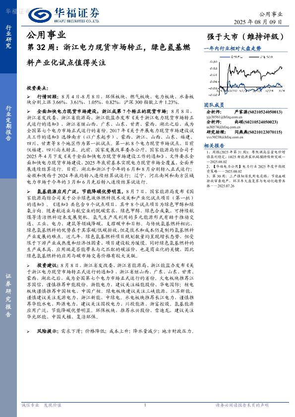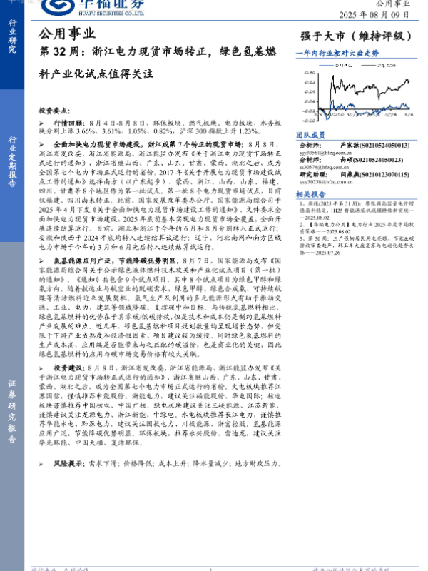 【华福证券】【20250809】浙江电力现货市场转正,绿色氢基燃料产业化试点值得关注-20页