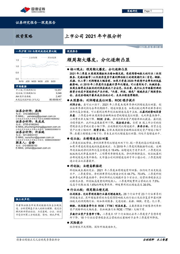 【国信证券】【20210831】上市公司2021年中报分析:顺周期大爆发,分化开始凸显-29页