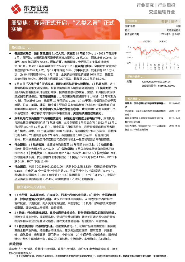 【东方证券】【20230108】交通运输行业周聚焦:春运正式开启,“乙类乙管”正式实施-20页