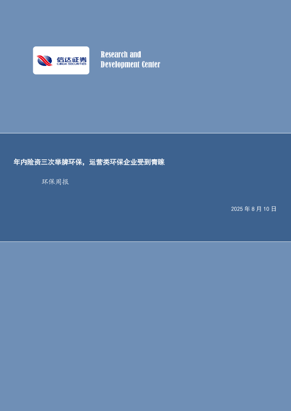 【信达证券】【20250810】年内险资三次举牌环保-运营类环保企业受到青睐-13页