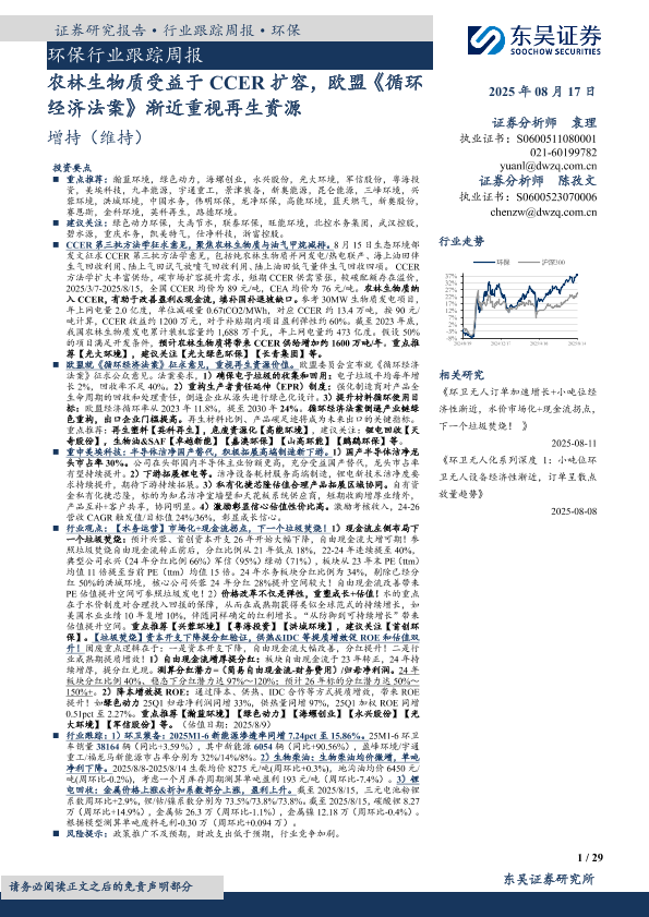 【东吴证券】【20250817】农林生物质受益于CCER扩容-欧盟《循环经济法案》渐近重视再生资源-29页