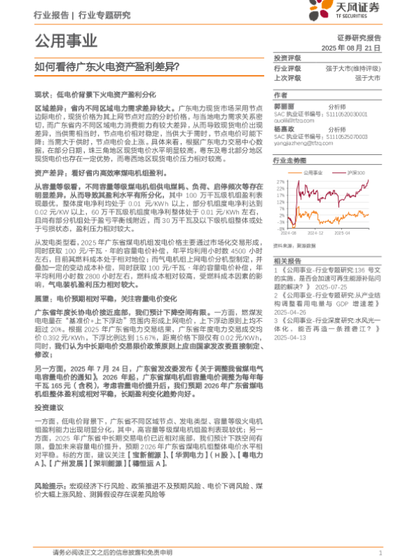 【天风证券TF SECURITIES】【20250821】如何看待广东火电资产盈利差异?-12页