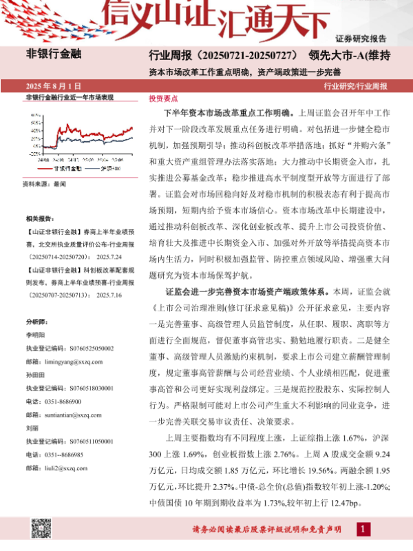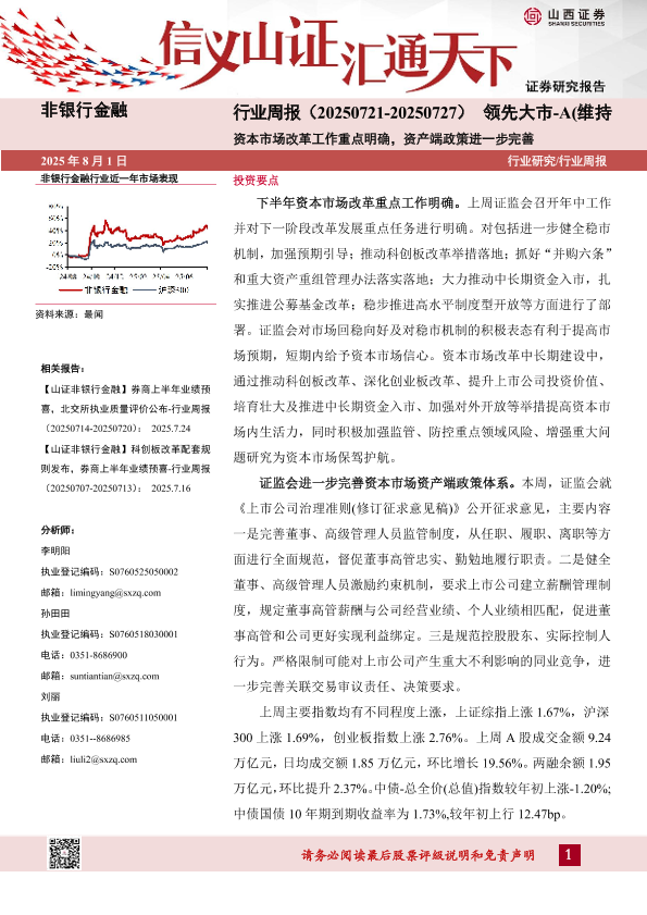 【山西证券】【20250801】资本市场改革工作重点明确,资产端政策进一步完善-10页