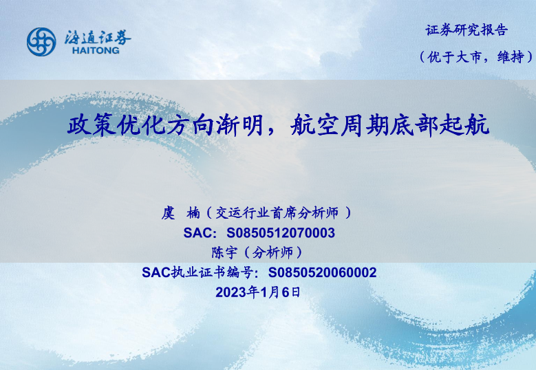 【海通证券】【20230106】交通运输行业:政策优化方向渐明,航空周期底部起航-28页