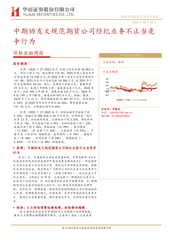 【华西证券】【20250803】中期协发文规范期货公司经纪业务不正当竞争行为-非银金融周报-11页