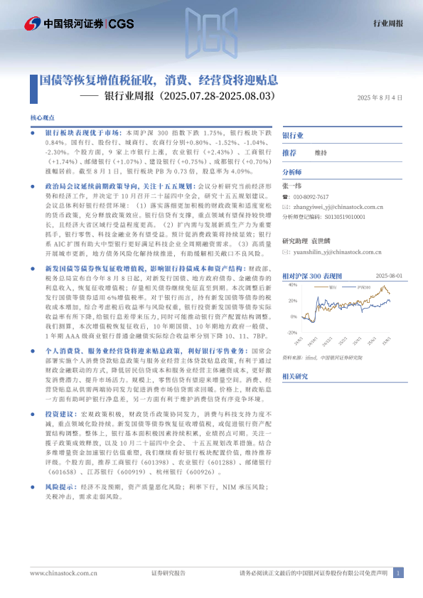 【银河证券】【20250804】银行周报:国债等恢复增值税征收,消费、经营贷将迎贴息-20页