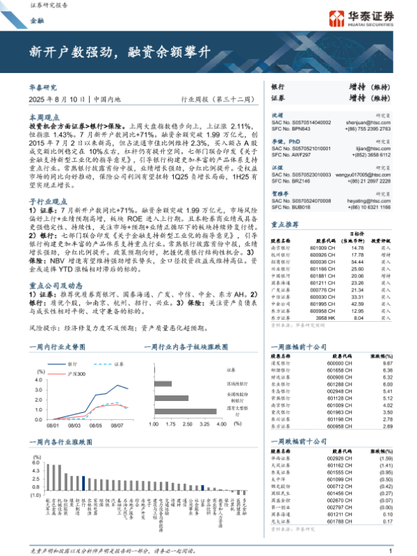 【华泰证券】【20250810】金融行业周报(第三十二周):新开户数强劲,融资余额攀升-23页