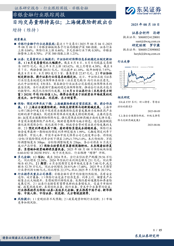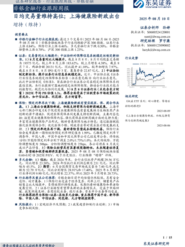 【东吴证券】【20250810】非银金融行业跟踪周报:日均交易量维持高位-上海健康险新政出台-15页