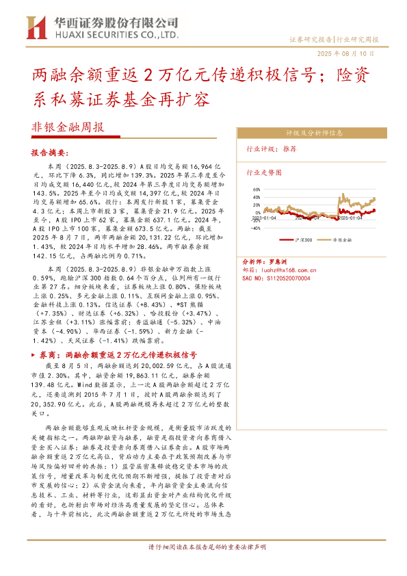 【华西证券】【20250810】非银金融行业周报:两融余额重返2万亿元传递积极信号-险资系私募证券基金再扩容-11页