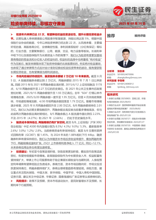 【民生证券】【20250810】险资举牌持续,非银攻守兼备-13页