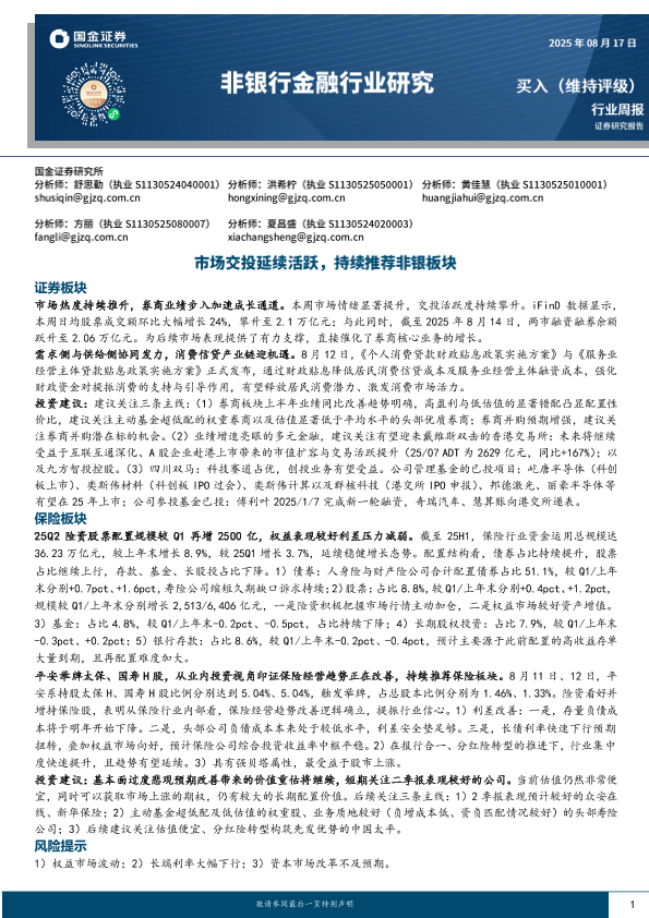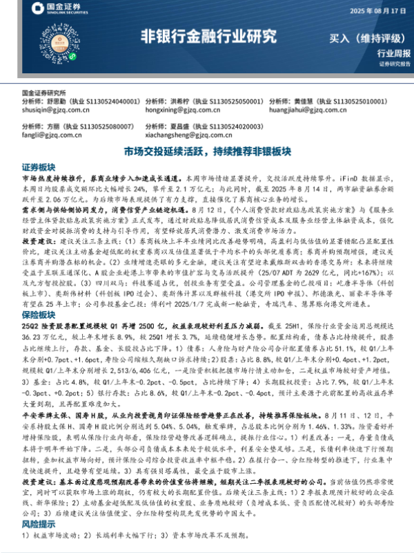 【国金证券】【20250817】非银行金融行业研究:市场交投延续活跃,持续推荐非银板块-11页