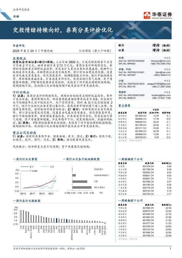 【华泰证券】【20250824】金融行业周报(第三十四周):交投情绪持续向好,券商分类评价优化-24页