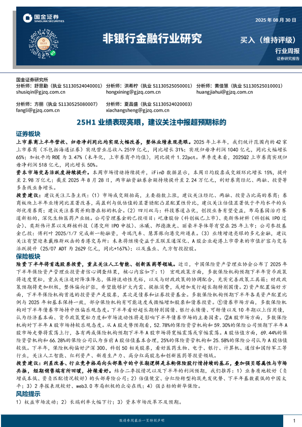 【国金证券】【20250830】非银行金融行业研究:25H1业绩表现亮眼-建议关注中报超预期标的-12页