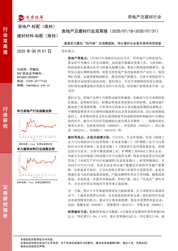 【东莞证券】【20250801】房地产及建材行业双周报:基建发力叠加“防内卷”及消费提振,预计建材企业基本面将持续修复-15页