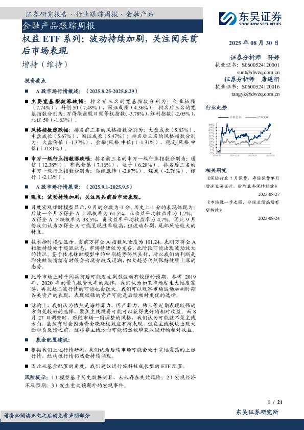 【东吴证券】【20250830】金融产品跟踪周报:权益ETF系列:波动持续加剧,关注阅兵前后市场表现-21页