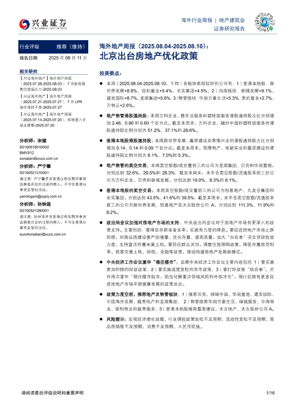 【兴业证券】【20250811】北京出台房地产优化政策-16页