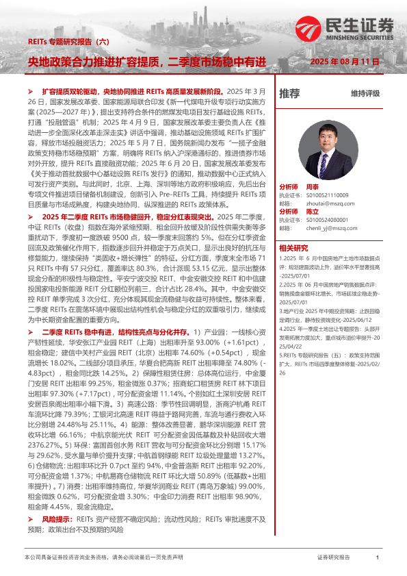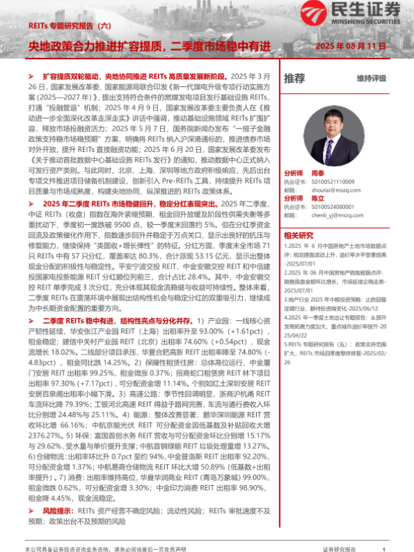 【民生证券】【20250811】房地产-REITs专题研究报告(六)-央地政策合力推进扩容提质,二季度市场稳中有进-38页