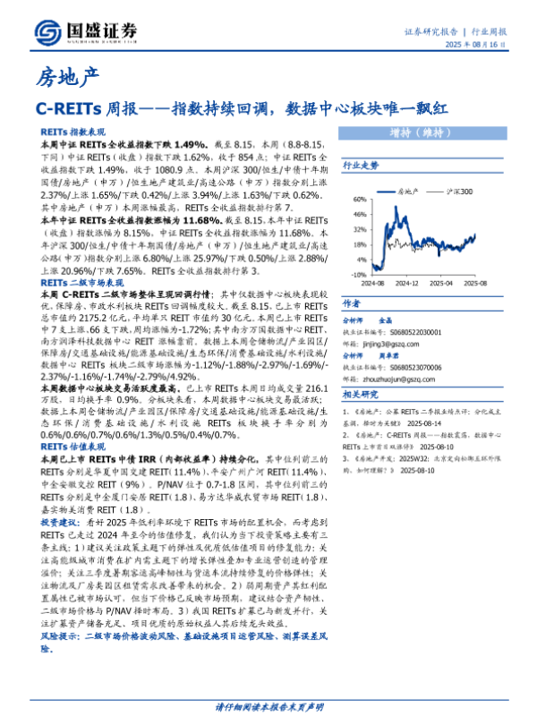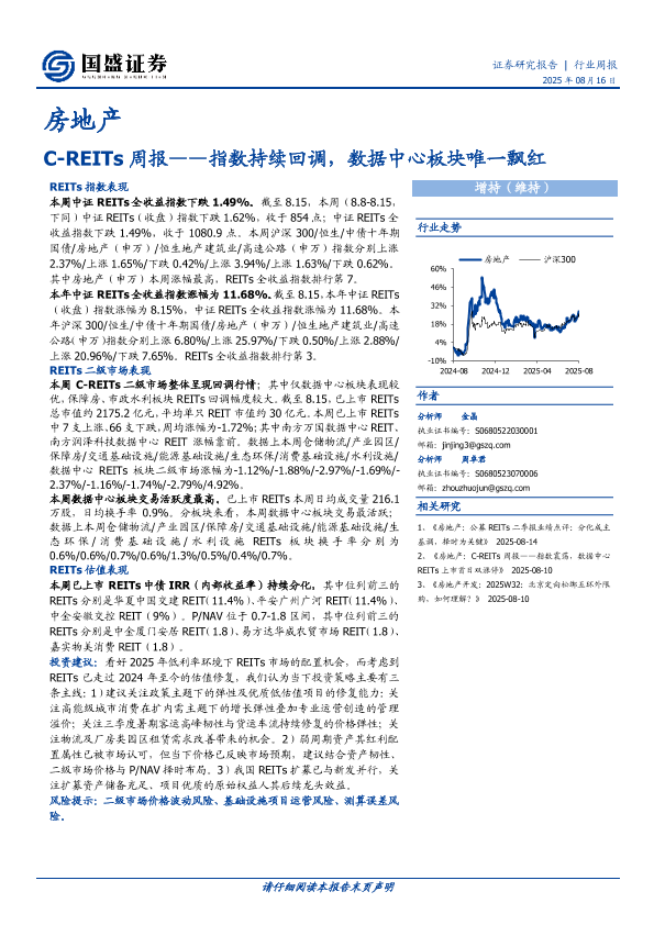 【国盛证券】【20250816】房地产-C-REITs周报:指数持续回调,数据中心板块唯一飘红-11页