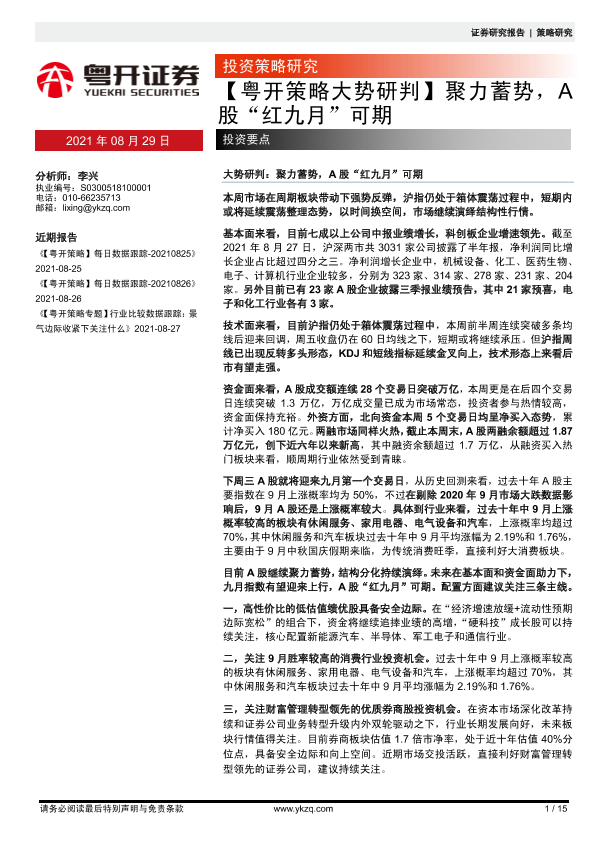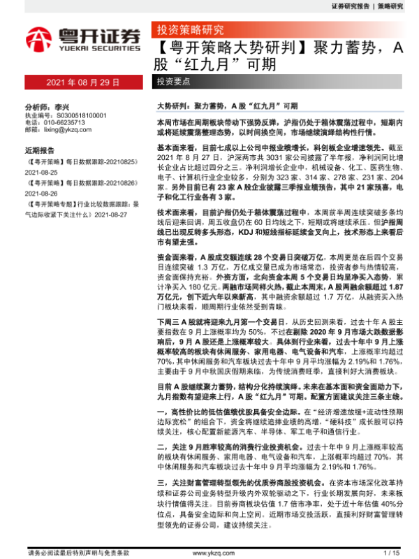 【粤开证券】【20210829】【粤开策略大势研判】聚力蓄势,A股“红九月”可期-15页