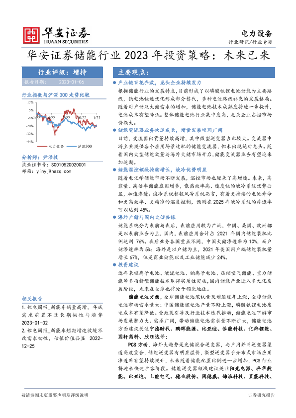 【华安证券】【20230106】储能行业2023年投资策略:未来已来-46页