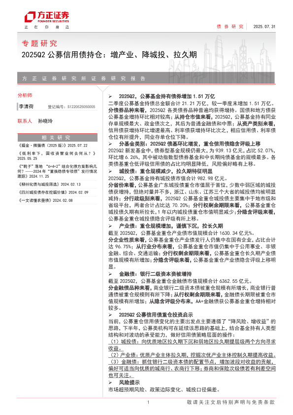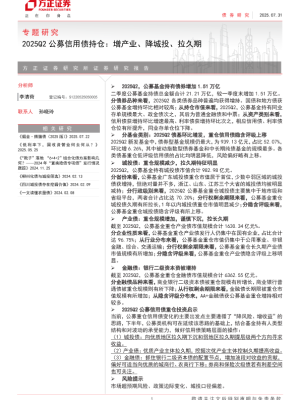 【方正证券】【202507】2025Q2公募信用债持仓:增产业、降城投、拉久期-18页