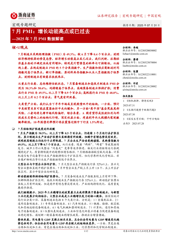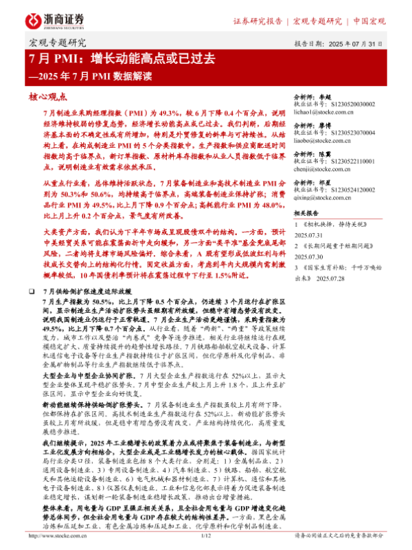 【浙商证券】【202507】7月 PMI:增长动能高点或已过去-12页