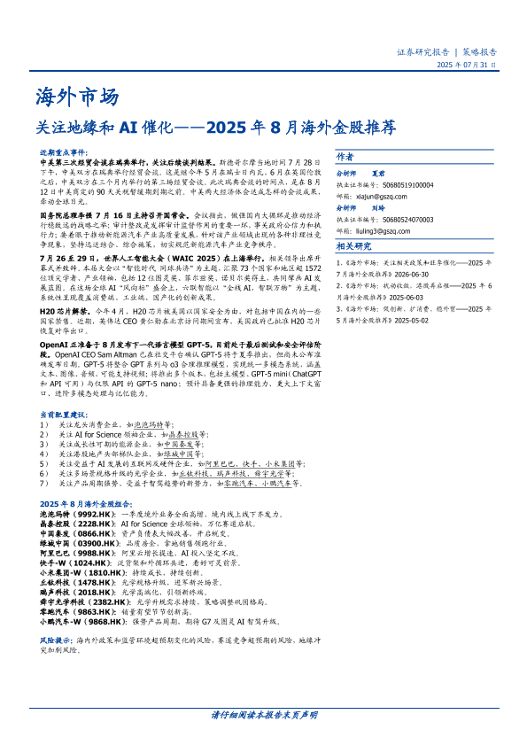 【国盛证券】【202507】关注地缘和AI催化——2025年8月海外金股推荐-20页
