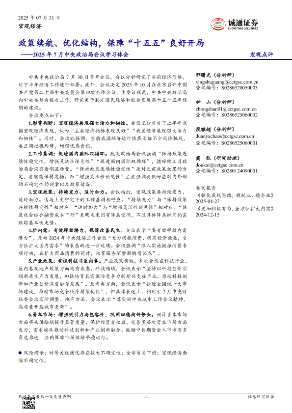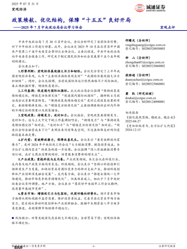 【诚通证券】【202507】政策续航、优化结构,保障“十五五”良好开局-10页