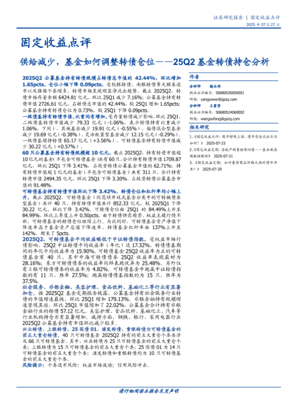 【国盛证券】【202507】供给减少,基金如何调整转债仓位——25Q2基金转债持仓分析-13页