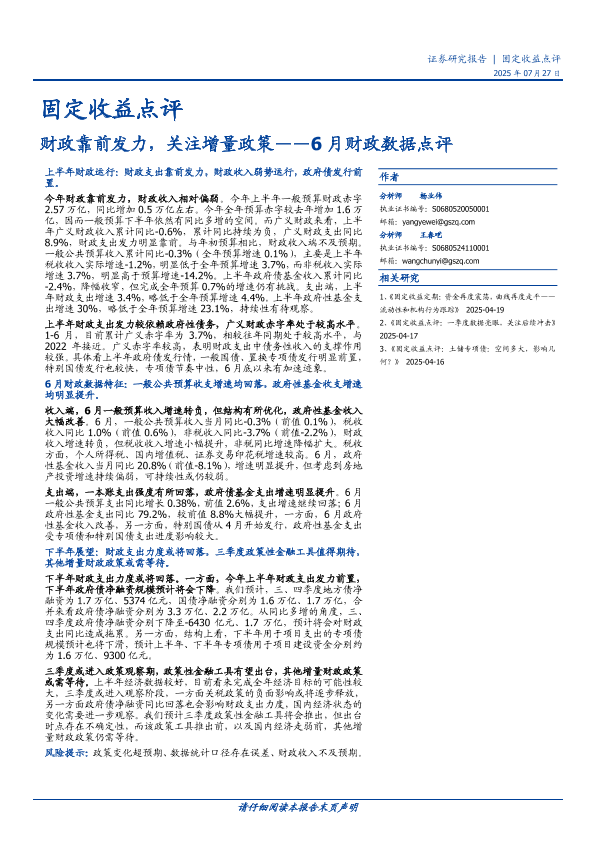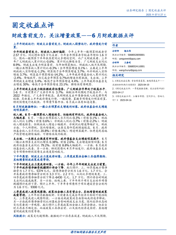 【国盛证券】【202507】财政靠前发力,关注增量政策——6月财政数据点评-10页