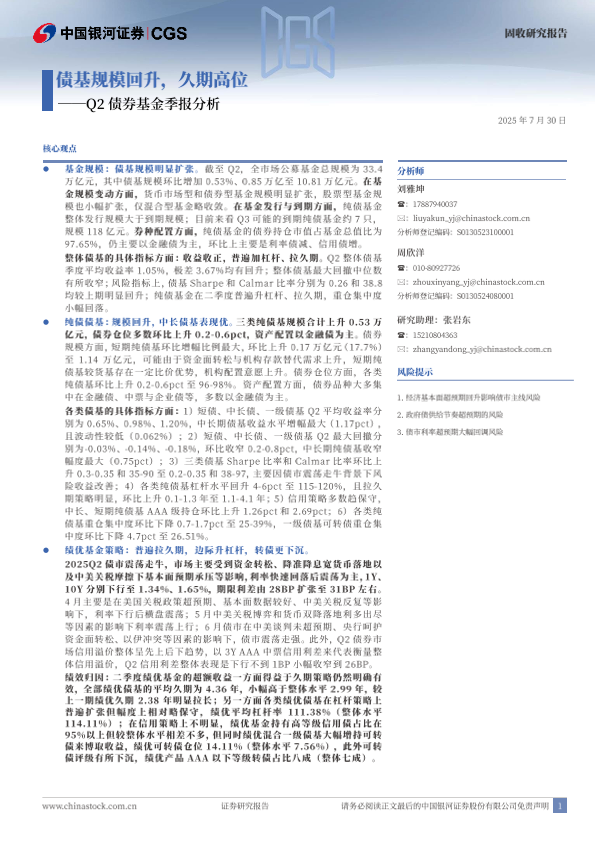 【银河证券】【202507】债基规模回升,久期高位Q2债券基金季报分析-27页