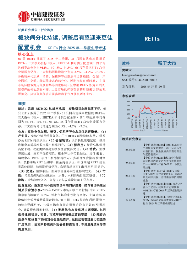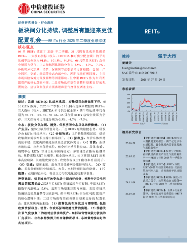 【中信建投证券】【202507】RE ITs行业2025年二季度业绩综述:板块间分化持续,调整后有望迎来更佳配置机会-30页