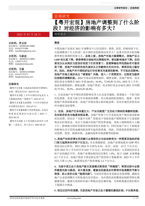 【粤开证券】【202507】【粤开宏观】房地产调整到了什么阶段?对经济的影响有多大?-13页