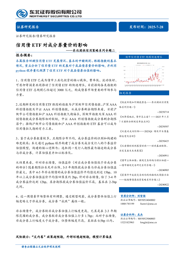 【东北证券】【202507】信用债ETF对成分券量价的影响-31页