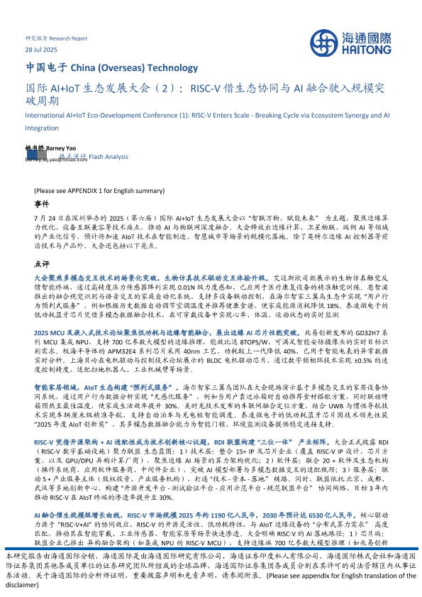 【海通国际】【202507】中国电子 China(Overseas) Technology 国际 AI+IoT 生态发展大会(2):RISC-V借生态协同与 AI融合驶入规模突破周期-13页