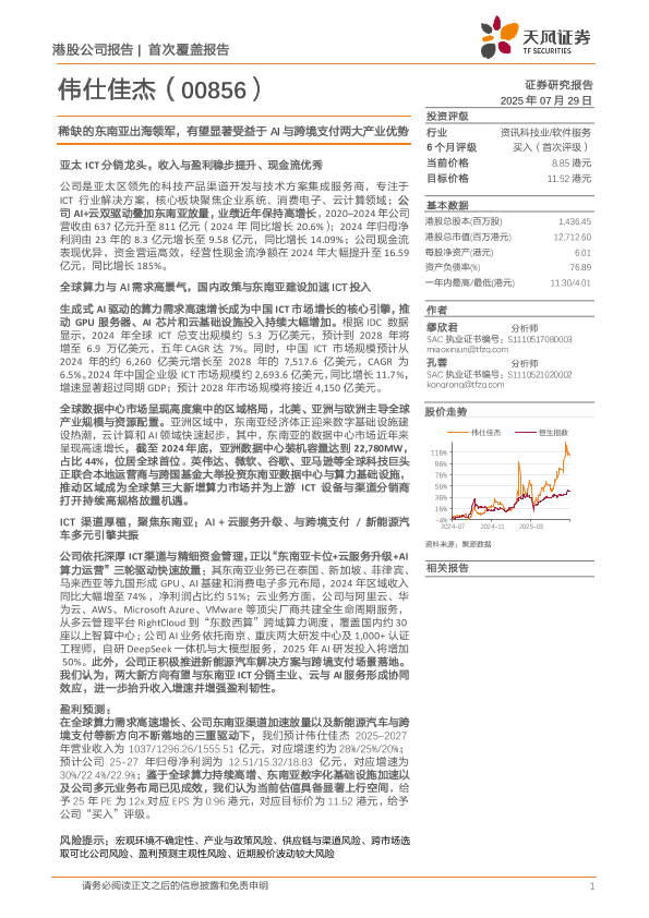 【天风证券】【202507】伟仕佳杰(00856.HK)稀缺的东南亚出海领军,有望显著受益于AI与跨境支付两大产业优势-22页