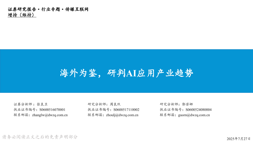 【东吴证券】【202507】海外为鉴,研判AI应用产业趋势-46页
